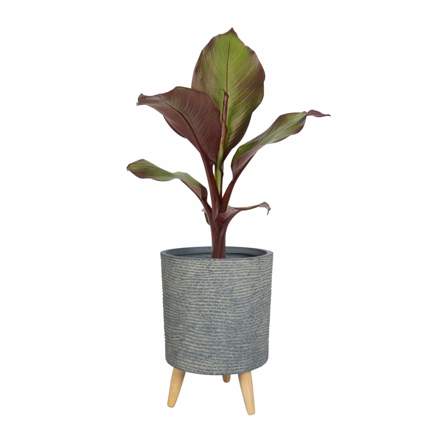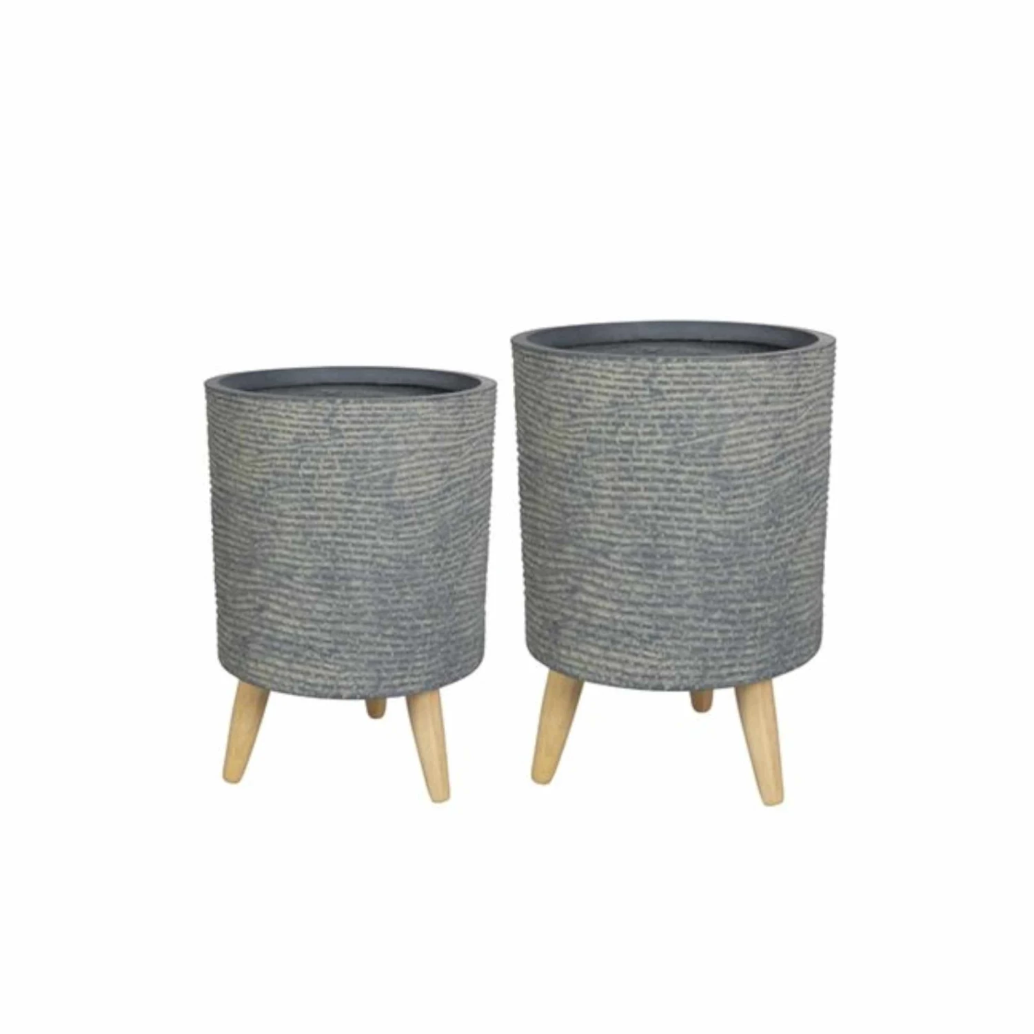 Hier kommt Riva. Dieser Blumentopf ist aus Zement gefertigt und hat kleine Beine aus Holz. Gib deinen Zimmerpflanzen die perfekte Bühne mit diesem Blumentopf-Set.